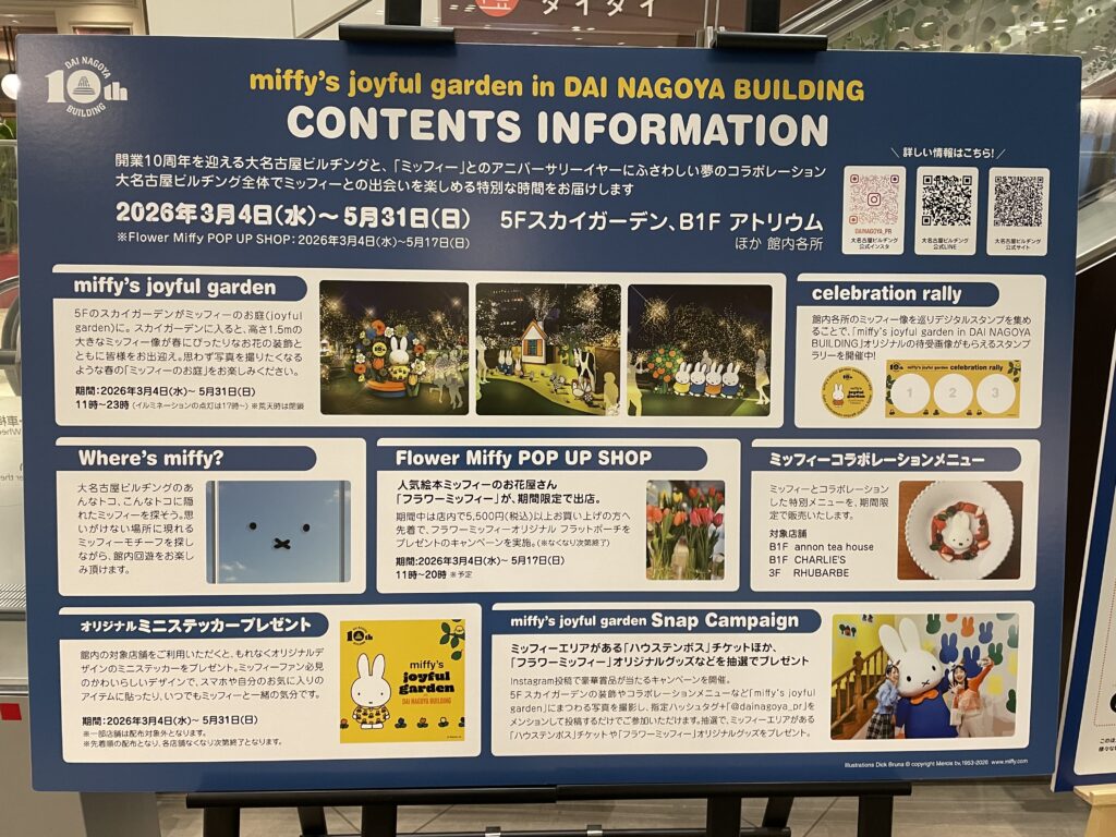 大名古屋ビルヂング10周年イベント「miffy’s joyful garden」は、2026年5月31日(日)まで開催されています。